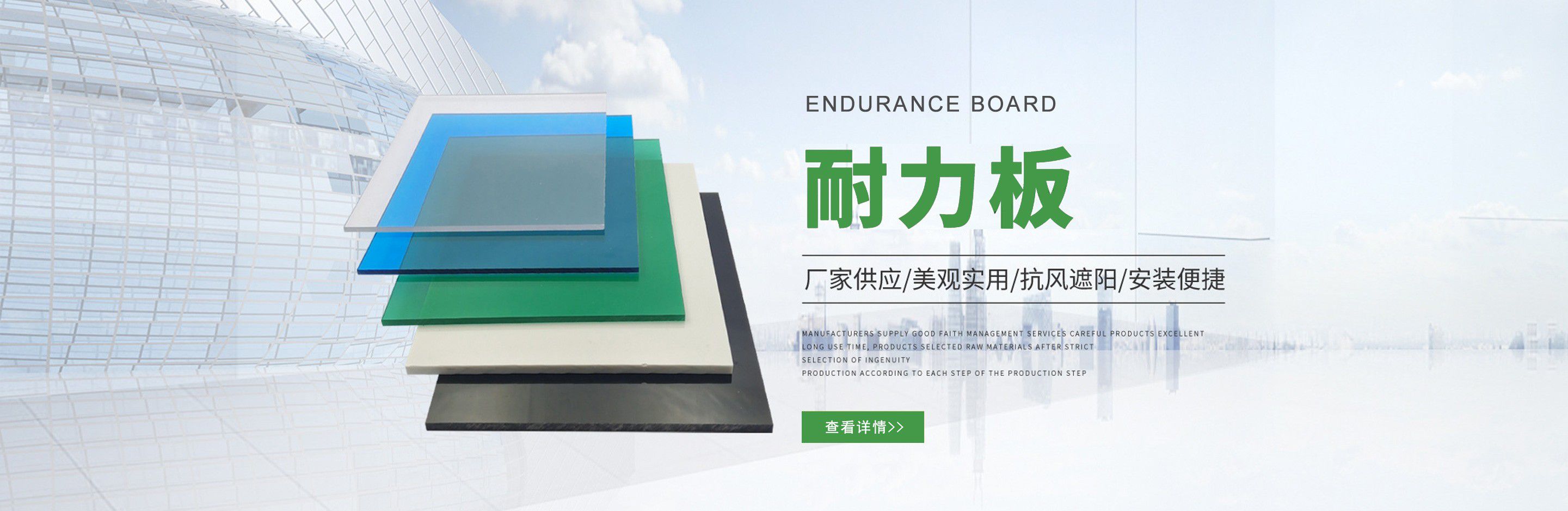聊城市沐金塑膠有限公司注冊資金2180萬元,占地20000余平方,擁有自建廠房15000平方,員工100余名。10余年來,公司主營耐力板,鎖扣耐力板,耐力板深加工,無動力通風器,組合雨搭,PVC硬脂板,耐力板廠家等板材的發展戰略,逐漸成長為綜合性企業。 公司擁有多條板材共擠生產線,采用世界知名品牌進口原材料和先進工藝,依據完善的ISO9001質量管理體系和ISO14001環境管理體系,為產品的卓越品質提供了強有力的保證。憑借過硬的創新能力和堅實的硬件基礎,贏創已成為國內領先的熱塑性板材生產商,產品被廣泛應用于建筑業、農業、工業、廣告業、安防行業及DIY領域。 公司始終致力于通過提供最優的板材應用解決方案,為客戶創造最高的價值;堅守創新、質量、靈活、服務和速度的核心價值觀;堅持“完美的產品需要完美服務的支持”的經營理念,努力實現成為世界領先的板材與解決方案供應商的夢想?! ≡谖磥恚緦⒘⒆憧蛻粜枨螅粩喔淖兒屯晟片F有產品,拓展產品線和充分開發板材的應用領域,為客戶創造全方位的價值。同時更好地實現員工的價值,實現公司團隊的價值。我們將與您一起創贏未來! 企業使命:成為世界領先的板材與解決方案供應商?! 」驹妇埃和ㄟ^提供最優的板材應用解決方案,為客戶創造最高的價值。 核心價值觀:質量...